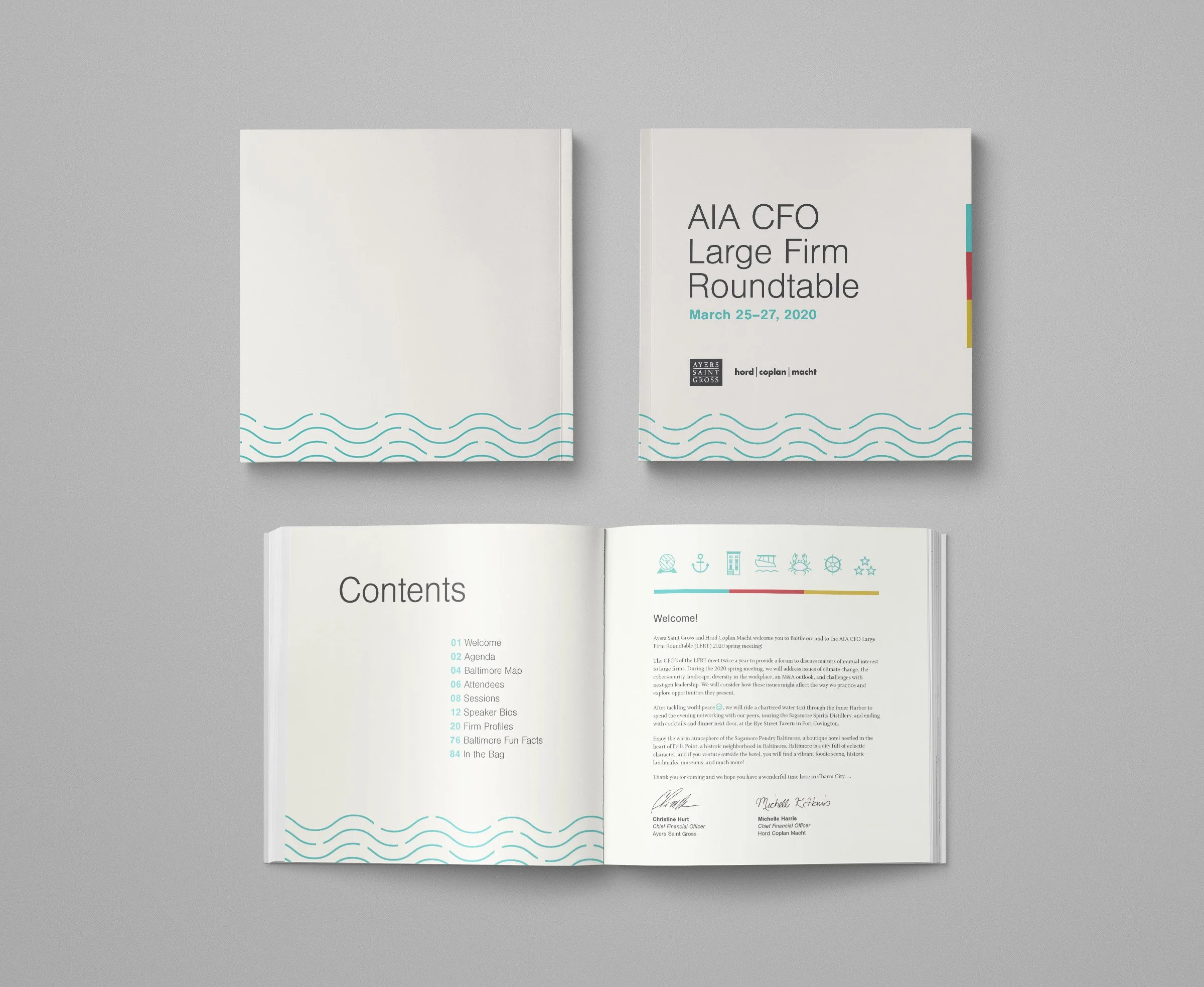 Developed the layout, illustrations, and branding for the AIA’s annual conference booklet, attended by the CFOs of 40+ large architecture firms across the country. The conference was hosted in Baltimore, Maryland which inspired the booklet’s Baltimore-centric theme. In collaboration with Ayers Saint Gross’ CFO, I designed the booklet, kept the project schedule on track for delivery, and coordinated print production with our print vendor.